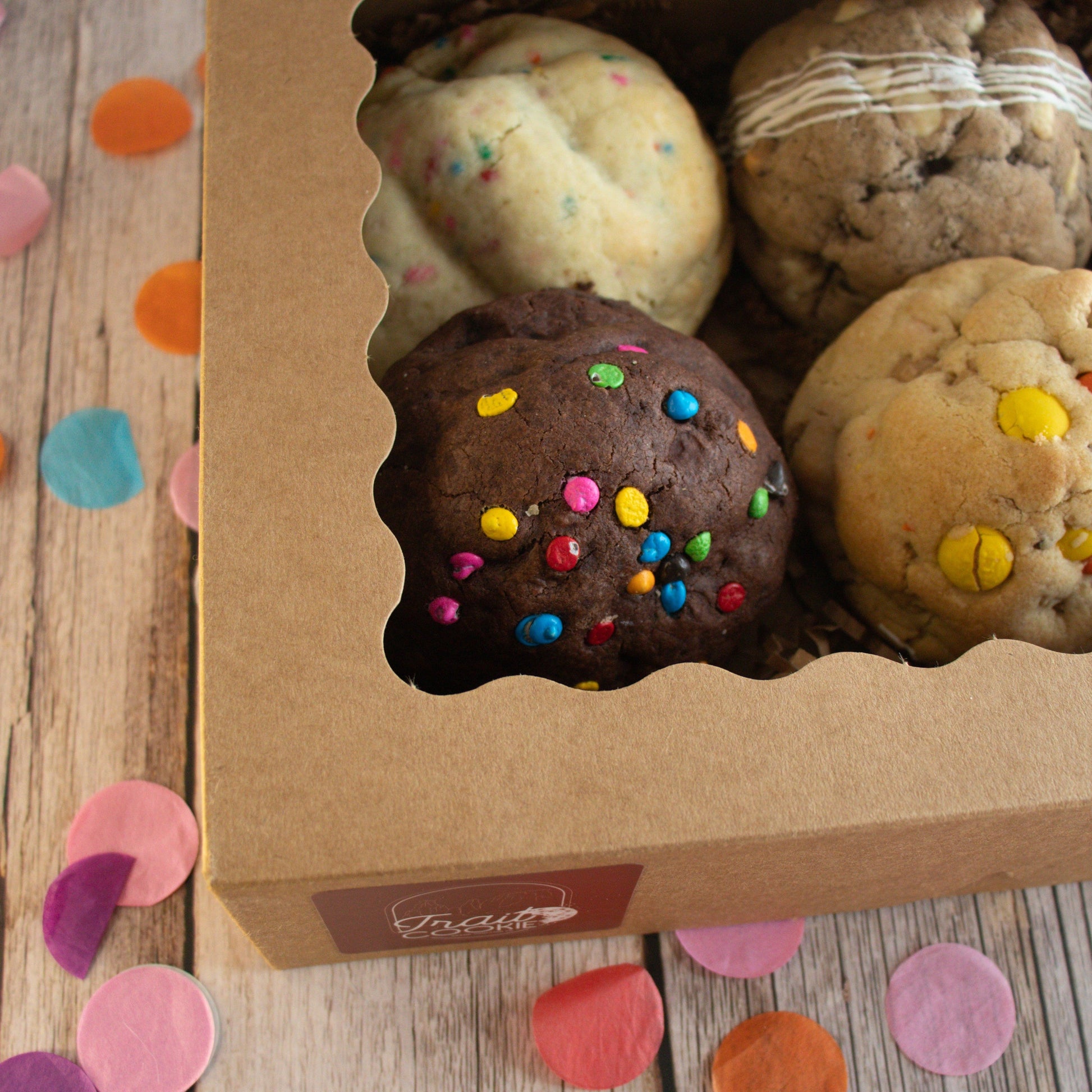 You will receive 4 cookies in each selected flavor. Each cookie weighs 2 oz. and comes heat-sealed. Perfect for sharing.